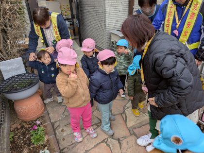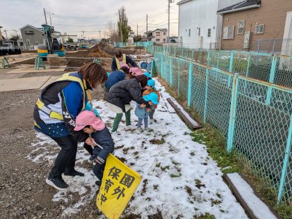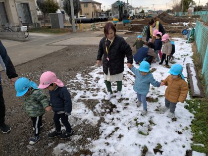 ⤵の写真 1月2日に降った残雪です😊 お散歩前に子どもたちに雪を踏む感触を味わってもらいました(^^)v