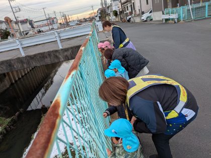 近くの川までいきました。お魚さんいるかなあ⁉