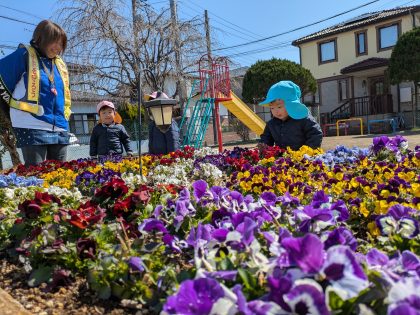 「きれいな花たちだね! アリさんいるかなあ? 虫さんこっちにいないかな?」