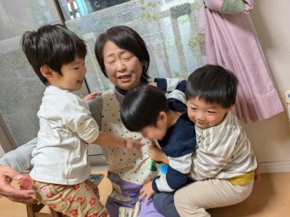 終わりのご挨拶後、園長をハグしてくれたちゅうりっぷ組さん達❗ すごい顔をしている園長です(写真写りが悪くてすみません)が、とても嬉しかったです(^^)v