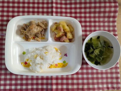 コンソメスープの小松菜は、上手に除けて食べていました(苦笑)