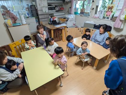 ♪ おせよおせよ~ を二人組で楽しみました(^<^) たんぽぽ組さん達も二人組での手遊びを楽しめるようになってきました(^^)v
