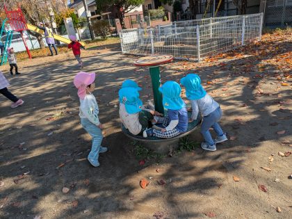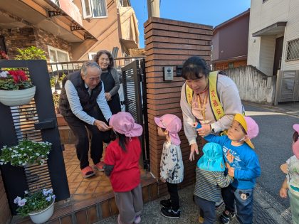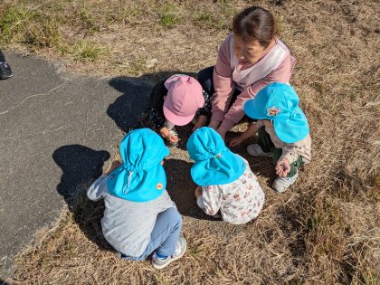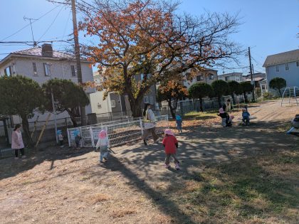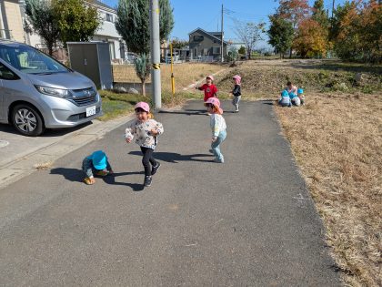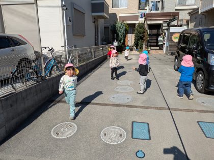 朝は寒く感じ、裏起毛のトレーナーを着ていたお友達もいましたが、途中で薄着に調整し、お散歩に行ってきました😊