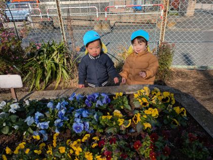 今日もパンジーのお花がいっぱい咲いてますね‼ たんぽぽ組のお二人さんも笑顔のお花が咲きそうですね(^^)v
