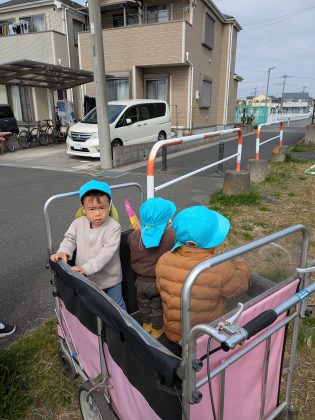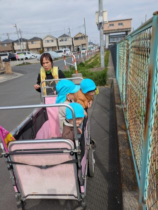たんぽぽ組のお友達は、久しぶりのカートに乗って、ルンルン気分!