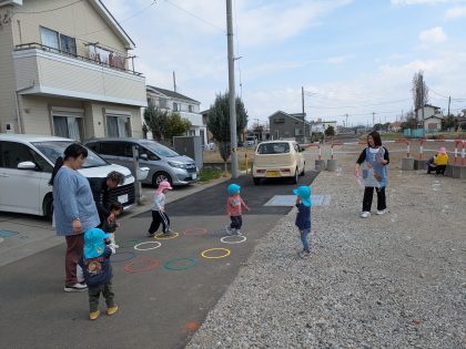 卒園式のリハーサルをしていたちゅうりっぷ組さんも加わって、園前でも遊びました。(^▽^)/