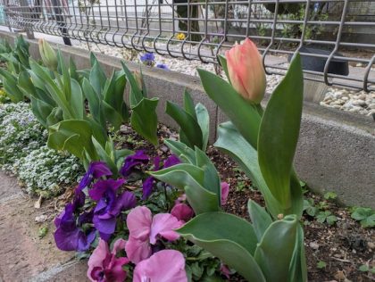 みんなで植えたちゅうりっぷの球根。今日初めて、かわいいお花を咲かせました