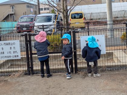 砂場で遊ぼうかなあ⁉ 先生開けて下さーい😊