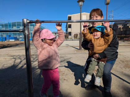 近くの公園での鉄棒(^^)v ぶら下がることができるかなあ⁉