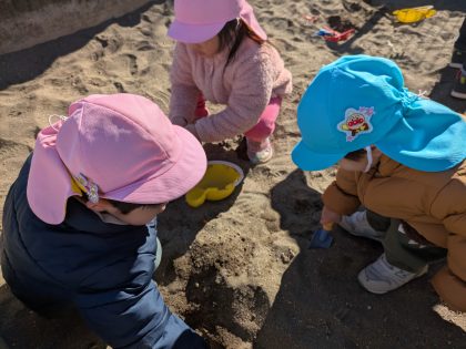 興味を持ってよってきたお友達😊 身近な自然に触れる体験‼ 触った感触は、どうだったでしょうか⁉