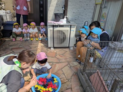 ⤵の写真 たんぽぽ組のお友達は、ここで待機(^o^) 順番に金魚などをすくいます^_^
