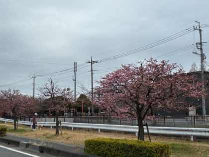 川沿いの川津桜が、ちらほら咲いてきましたよ~)^o^(