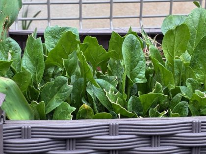 ⤵の写真ちゅうりっぷ組さんと蒔いたほうれん草の種が・・・立派なほうれん草に成長してきました❗