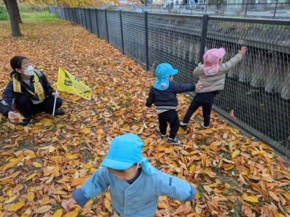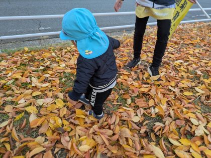 「落ち葉のお土産 ママにプレゼントしようっと(^o^)」