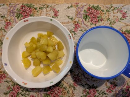 おやつは・・・給食でおなかいっぱい食べたからでしょうか⁉ あまりすすみませんでした💦