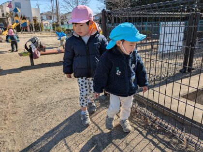 どんなところでも「砂場」になるね😊 お砂場大好きお二人さん、何を作っているのかな⁉