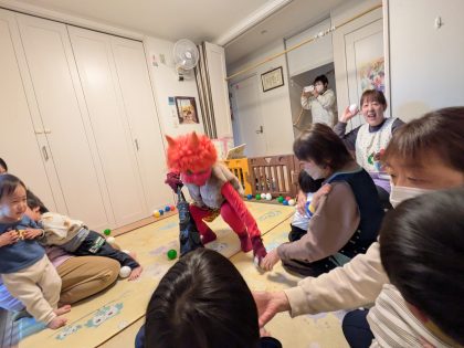悪い子いないよ~ 福は内~ 鬼は外~ とボールを鬼めがけて投げるお友達もいました❗ 勇気を振り絞ってよく頑張りました👏