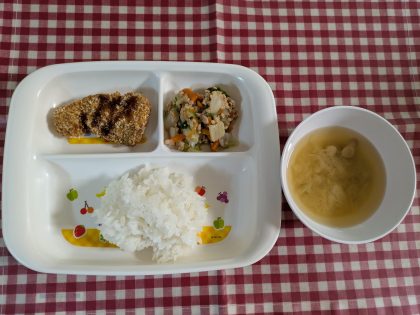 鮭フライの衣(特別にパン粉に焦げ目を付け、振りかけています)が大人気(^^)v