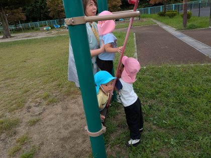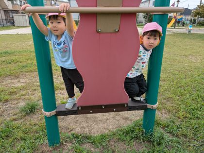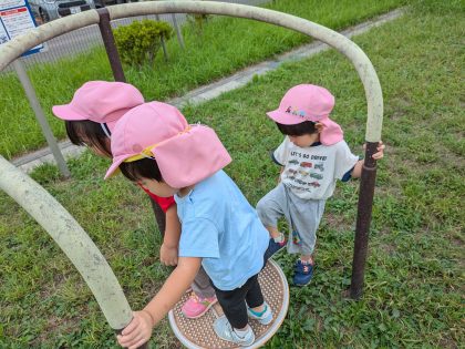 数カ所健康増進器具⁉ が設置されていて、子どもたちは興味津々😊