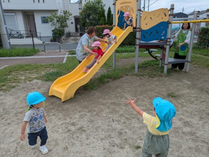 アスレチック付き滑り台も人気の遊具<^!^>