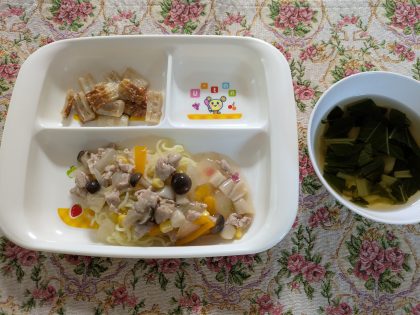 豚のあんかけ焼きそば大好評(^^)v 竹輪の甘辛いためも大好評(^^)v