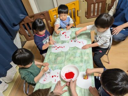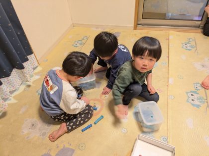ちゅうりっぷ組さん達も真剣なキラキラ輝くお目々で取り組んでいますね)^o^(