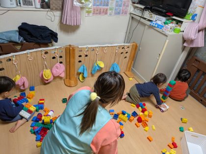 たんぽぽ組のお友達は、そばでブロック遊び^_^