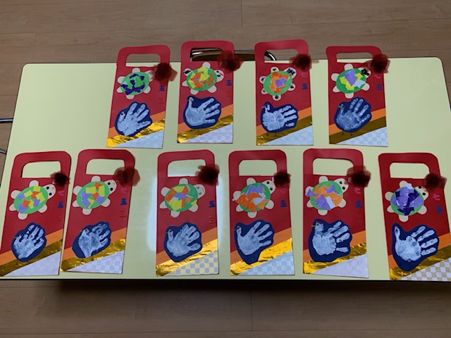 「鶴は千年、亀は万年」おうち保育園のお友達も、健康で、元気にすくすくと健やかに育ちますように❗️と願いを込めた製作物です。