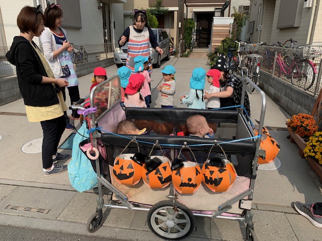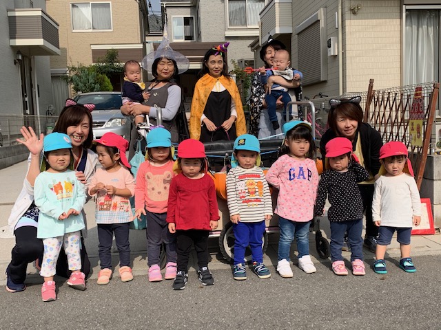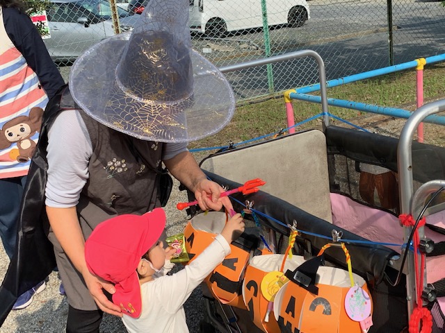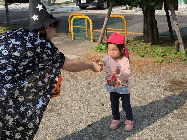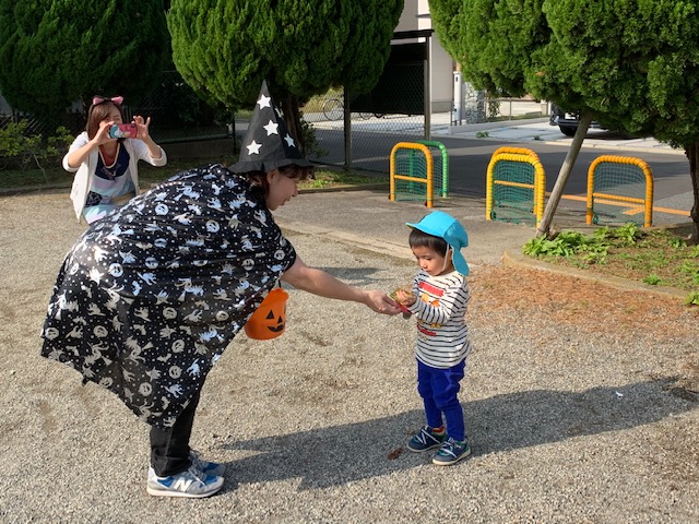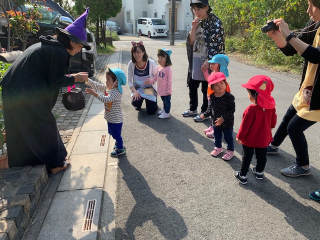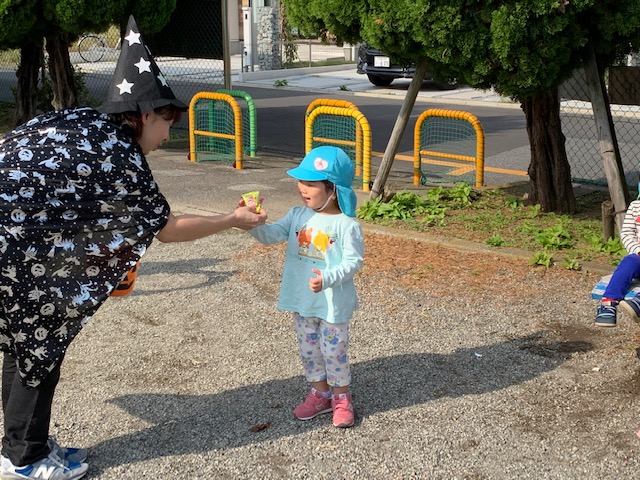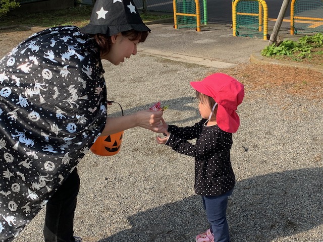 「お菓子ちょうだいな🍭」みんな大きな声で、魔女に伝えることができました!!