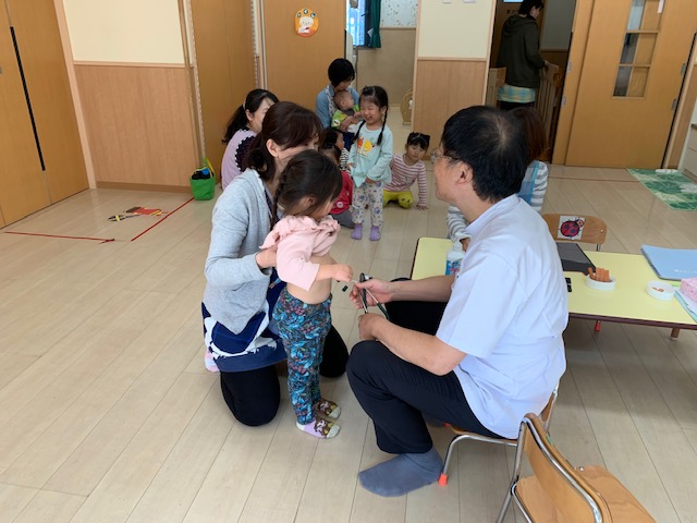 先生に見てもらいました。1人も泣く子がいませんでしたよ!!