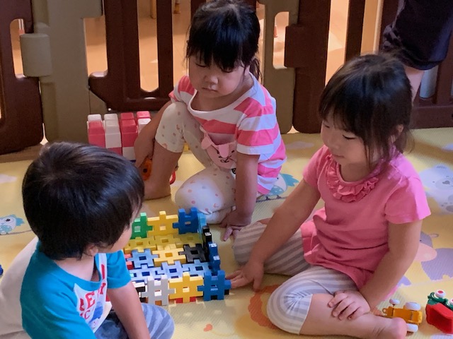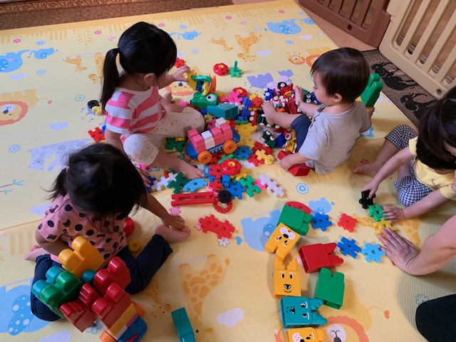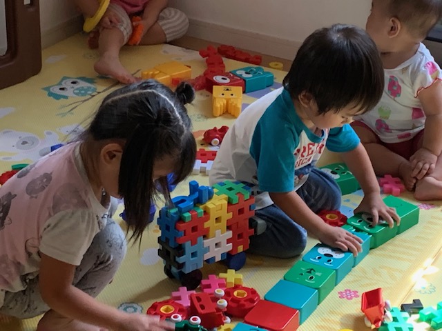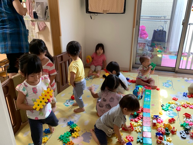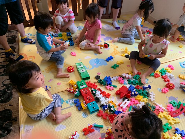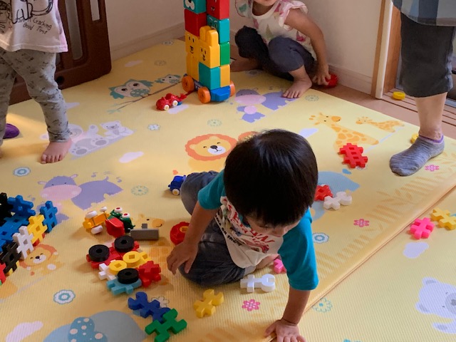 連休明け、元気いっぱい全員集合‼︎朝の自由遊びの様子です。